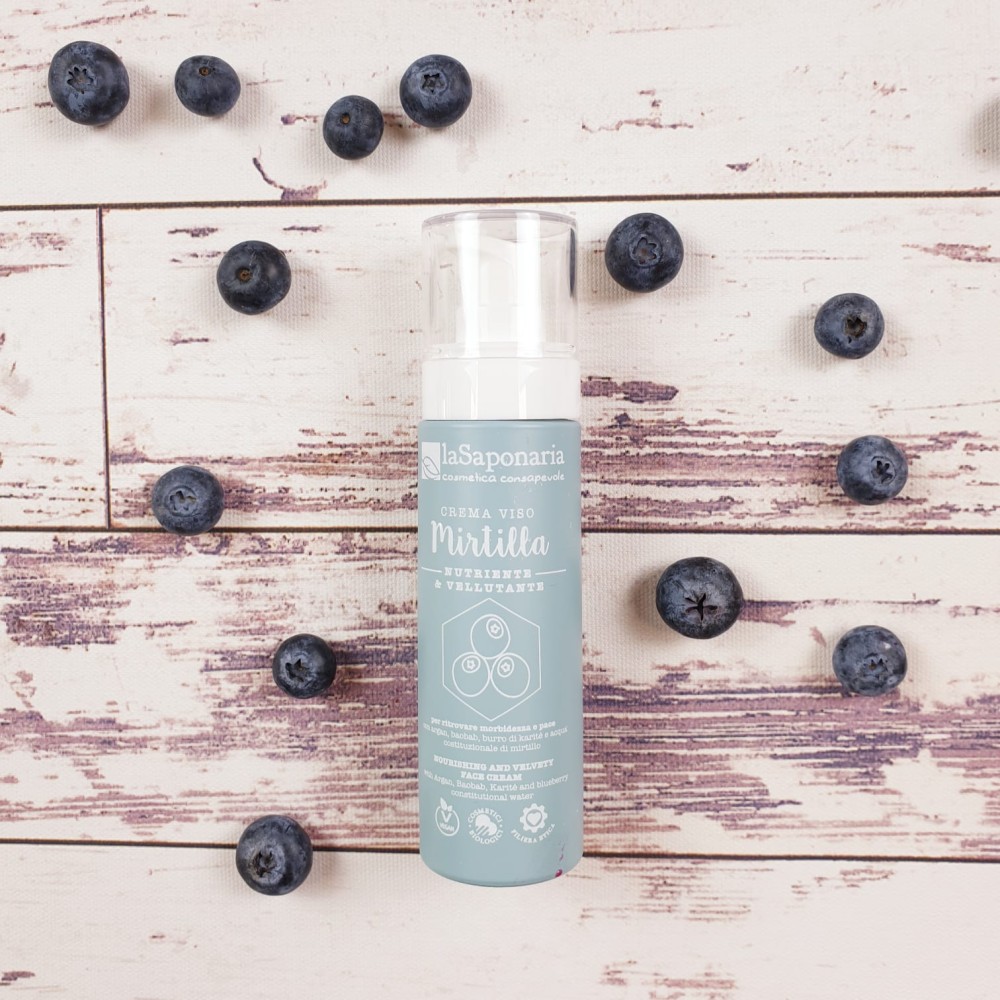 Contiene Acqua costituzionale di Mirtillo nero, rigenerante e antiossidante, Acido Ialuronico, per donare idratazione e splendore alla pelle, estratto attivo di Riso Venere, ricco di minerali ed antiossidanti naturali, e Calendula, un dolcissimo ingrediente a KM0 capace di coccolare e lenire anche gli animi più infiammati!