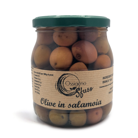 Le olive in salamoia hanno origini antiche. Si narra che già nell' antica Roma costituissero il pasto quotidiano dei legionari. Preparate in autunno con le olive appena raccolte dagli alberi, acqua e sale, possono essere gustate tutto l'anno. La conservazione in salamoia serve a rendere commestibili le olive appena raccolte, che in genere sono molto amare.