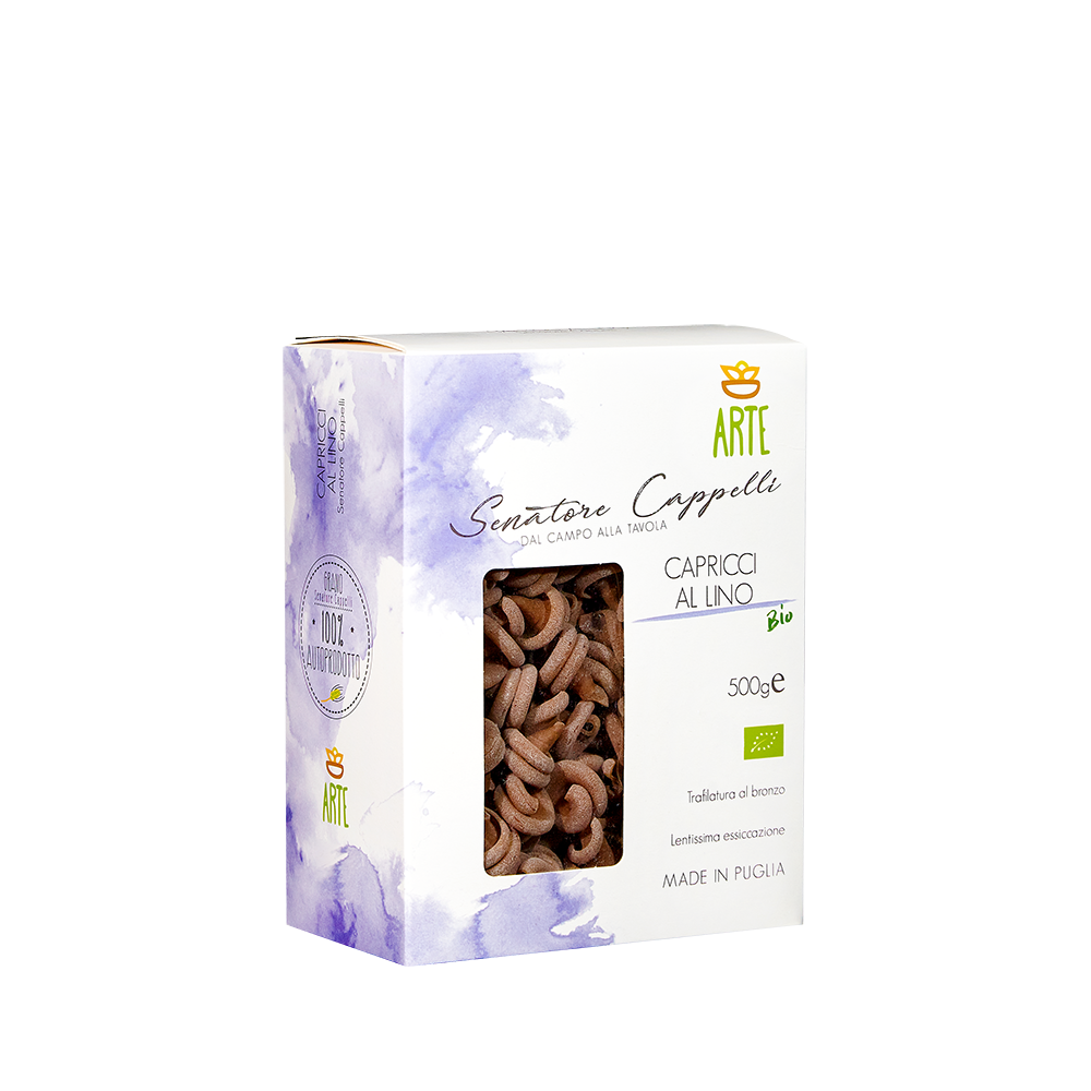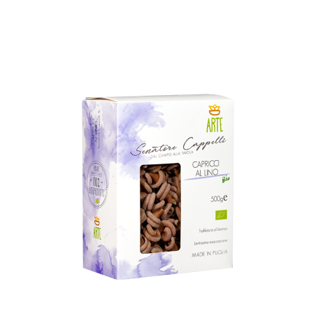 Ingredienti: Semola biologica di grano duro Cappelli, Farina biologica di lino, Acqua delle sorgenti del Sele