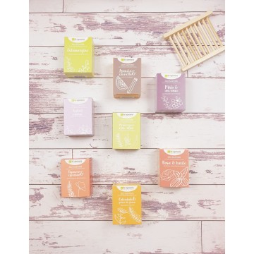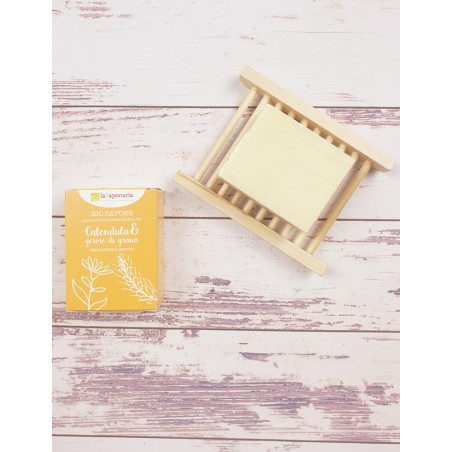 Olea Europaea Fruit Oil*, Cocos Nucifera Oil*, Aqua, Sodium Hydroxide, Triticum Vulgare Germ Oil, Citrus Aurantium Amara Leaf/Twig Oil*, Calendula Officinalis Flower Extract*, Sodium Phytate, Glycerin, Citric Acid, Linalool, Limonene, Geraniol, Citral. (* da agricoltura biologica)