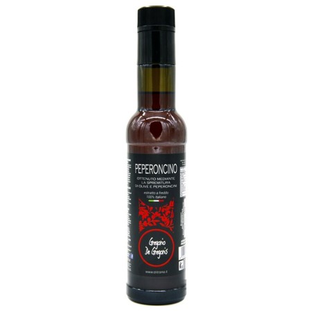 Condimento a base di olio Extravergine d’Oliva ottenuto mediante la spremitura di olive e peperoncini nel frantoio De Gregoris. Sapore deciso ma equilibrato, un tocco audace per chi vuole trasformare ogni ricetta in un’esperienza. Senza aromi artificiali. Solo olio EVO di alta qualità e peperoncino selezionato. Un classico della tradizione mediterranea, pronto a conquistare ogni palato.