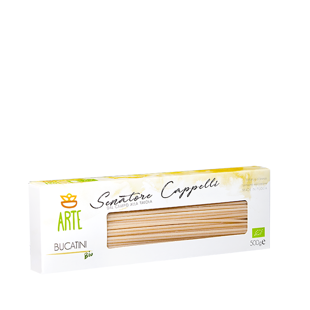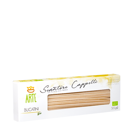 Pasta di semola di grano duro biologico Senatore Cappelli autoprodotto sui campi dell'Azienda Agricola Arte, trafilatura al bronzo e lentissima essiccazione sotto i 32° C.