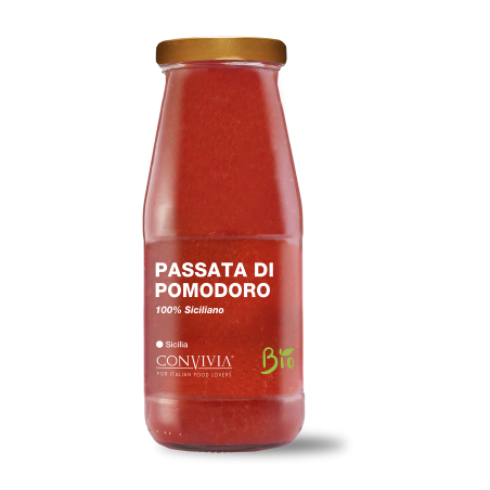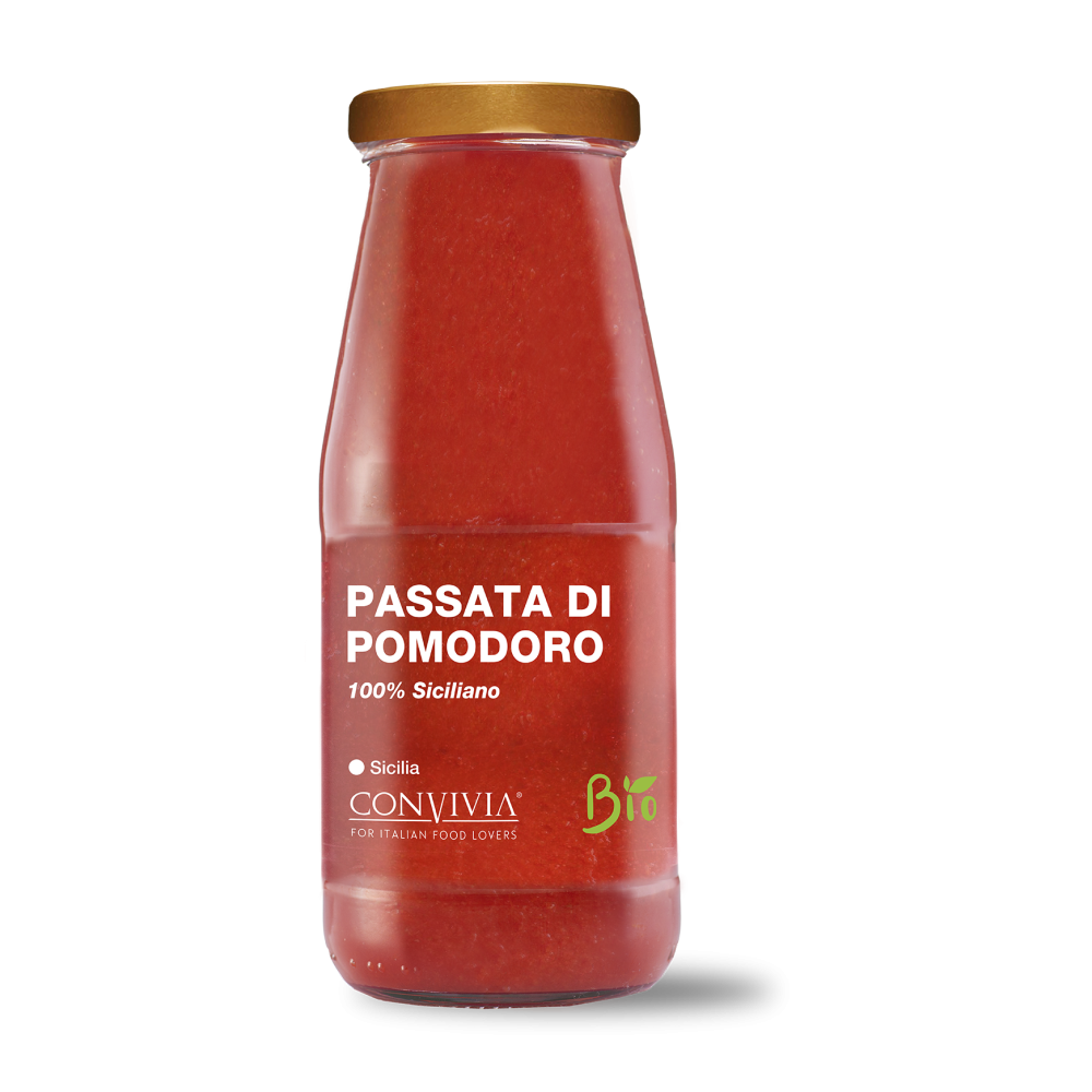 Passata di pomodoro BIO realizzata con pomodori maturi e selezionati a mano, coltivati senza l’uso di pesticidi e prodotti chimici. La lavorazione avviene a basse temperature per preservare al meglio il sapore e le proprietà organolettiche dei pomodori.